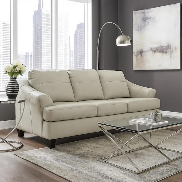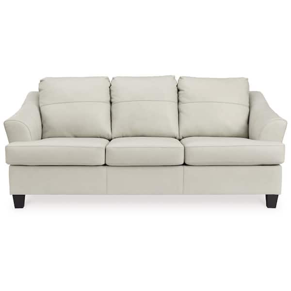 Geno 38 in. Slope Arm Faux Leather Rectangle Oversized Sofa in. Off White and Black