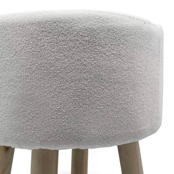 Ginni White and Natural Brown Wooden and Polyester Round Small (15.5 in. ) Ottoman (Set of 2)