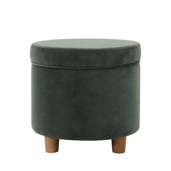 Gio Forest Green and Brown Velvet Round Storage Ottoman