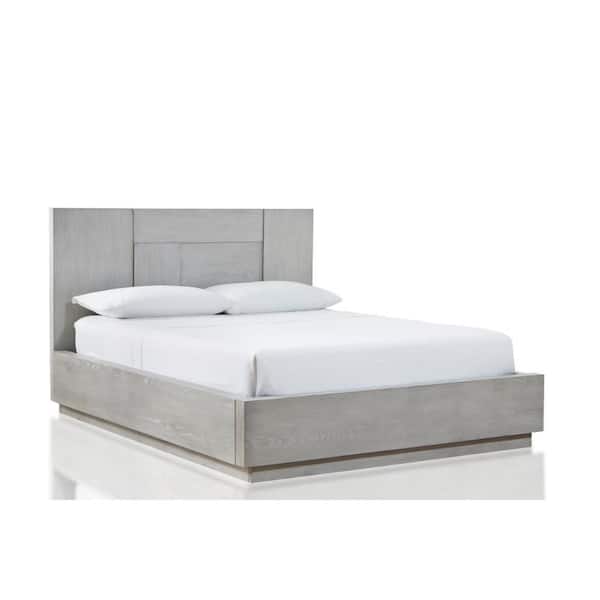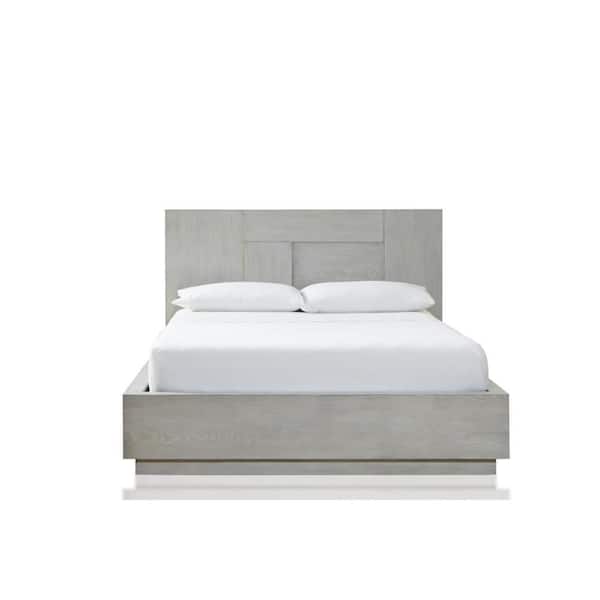 Glimps California Gray Wood Frame King Size Platform Bed with Headboard