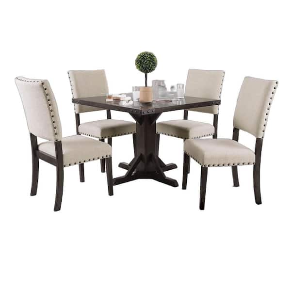 Gllen Cherry Brown and Ivory Wood 40 in. Pedestal Dining Table Seats-4