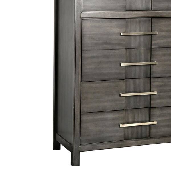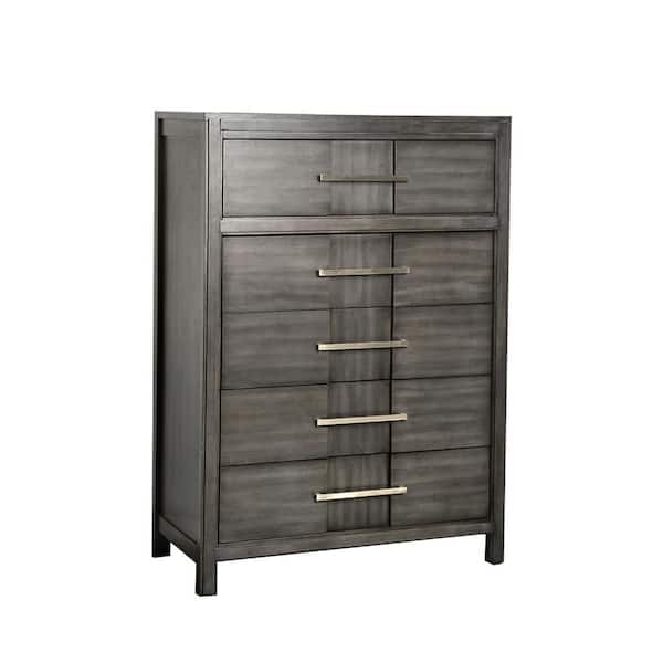 Gray 5-Drawer Contemporary Wooden Chest with Metal Bar Handles 17 in. L x 34 in. W x 19"