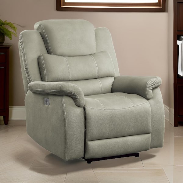 Gray Microfiber Power Recliner with USB Port and Solid Wood