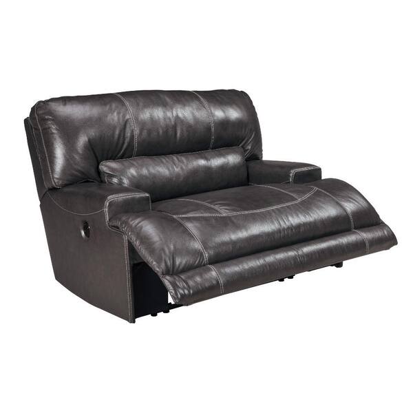 Gray Vegan Faux Leather Power Recliner with Adjustable Portions