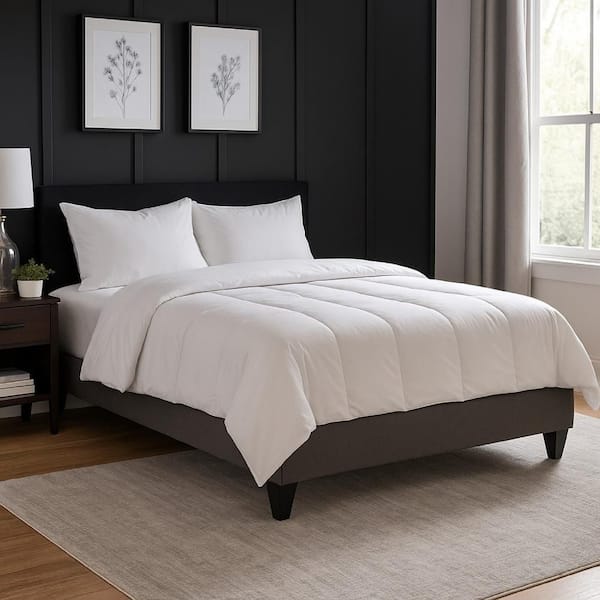Gray Wood Frame Queen Platform Bed with Mattress Support System