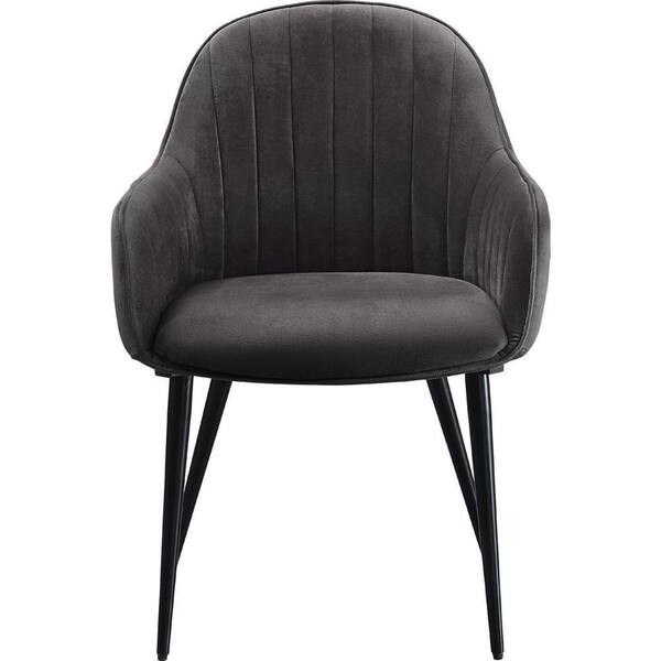 Gray and Black Fabric Side Chair with Channel Tufting and Round Tapered Legs (Set of 2)