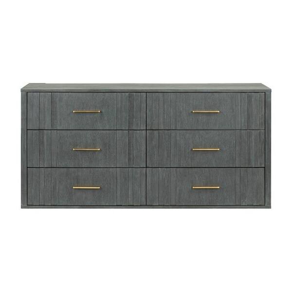 Gray and Brass Gold 6-Drawers 63 in. Dresser Without Mirror