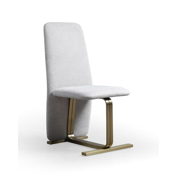 Gray and Brass Linen Metal Frame Dining Chair (Set of 2)