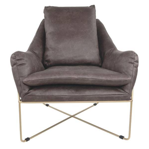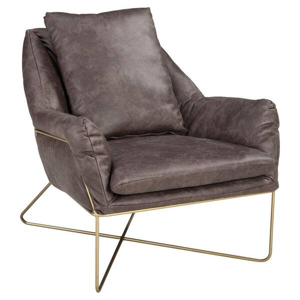Gray and Gold Faux leather Accent Chair with X Style Exposed Base