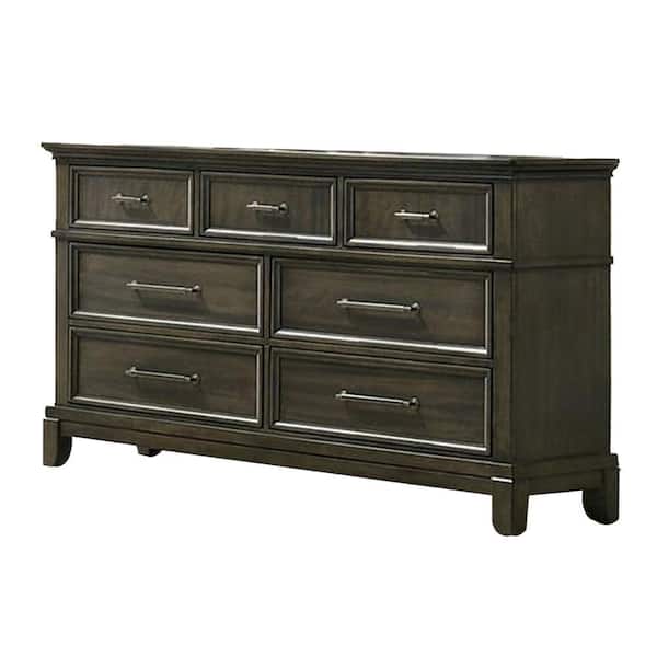 Gray and Pewter 7-Drawers 63 in. Dresser Without Mirror