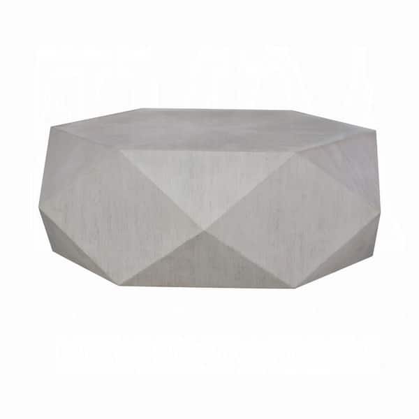 Hano 50 in. White Hexagon Wood Coffee Table with Geometric Plinth Base