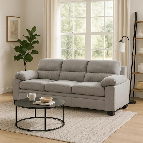 Hugh 35.5 in. Pillow Top Arm Polyester Rectangle Sofa in Gray and Black