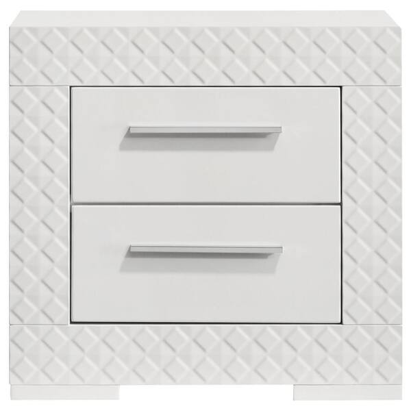 Ivon Glossy White 2-Drawer 25.5 in. W Nightstand