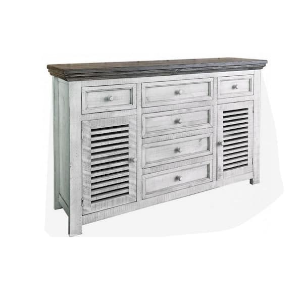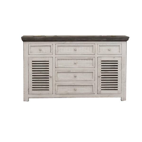 Ivory and Gray Wood Top 19 in. Sideboard with 6-Drawers and 2-Doors