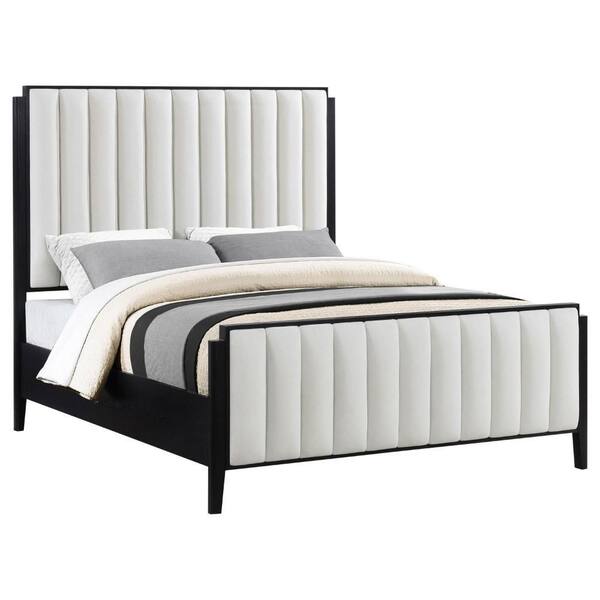 Jack California Black and Ivory Hardwood Frame King Platform Bed with Tufted Upholstered Headboard