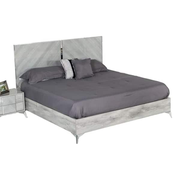 Jecky Gray and Chrome Metal Frame King Platform Bed