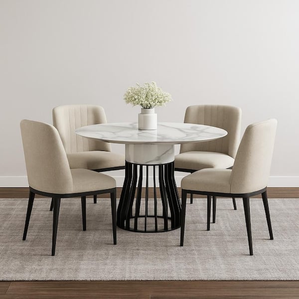 Jett Black and White Marble Round 47 in. Pedestal Base Dining Table Seats 4