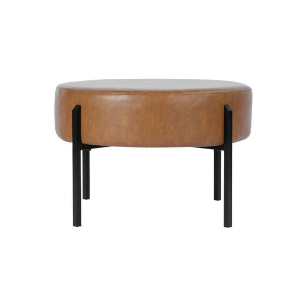 Joe Caramel Brown and Black Faux Leather Round Accent Ottoman