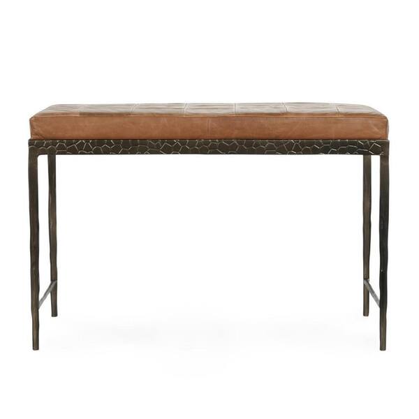 Jora Chestnut Brown and Dark Bronze Leather Rectangle Accent Ottoman