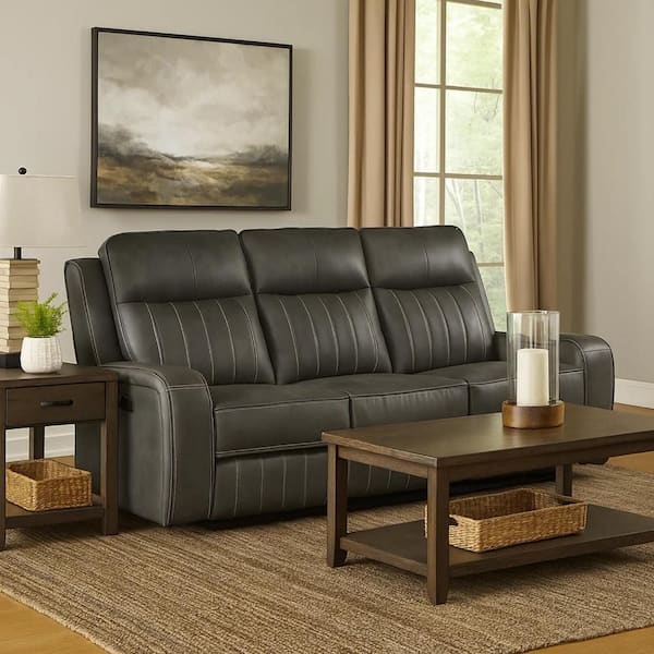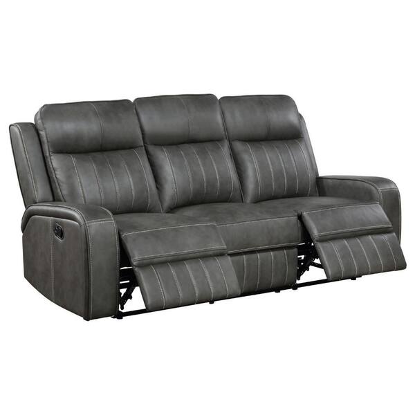 Josen 80.75 in. Straight Arm Faux Leather Rectangle Recliner Sofa in Gray