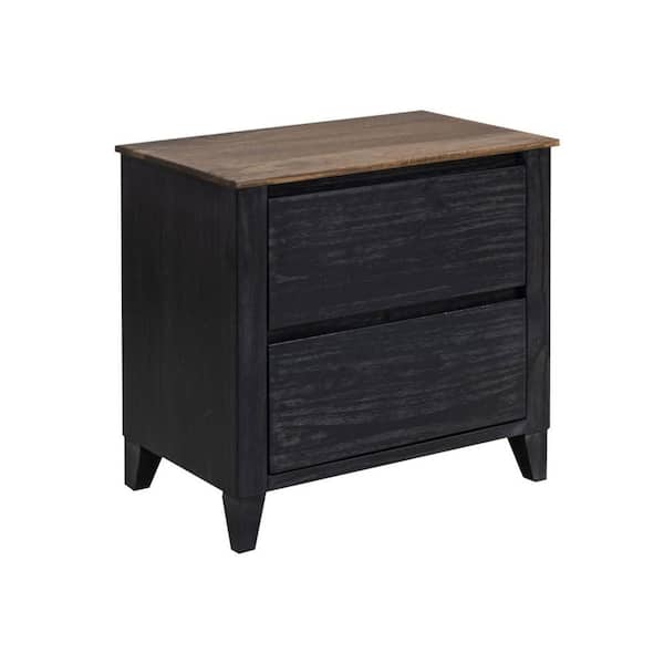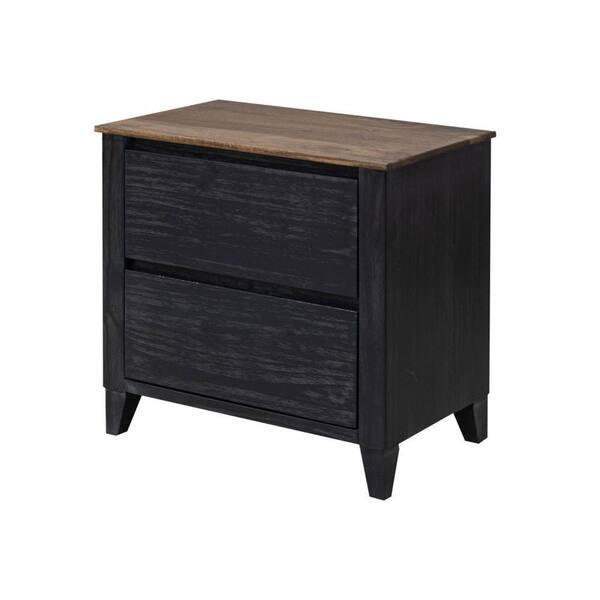 Kay Farmhouse Brown and Black 2 Drawer 27 in. W Nightstand