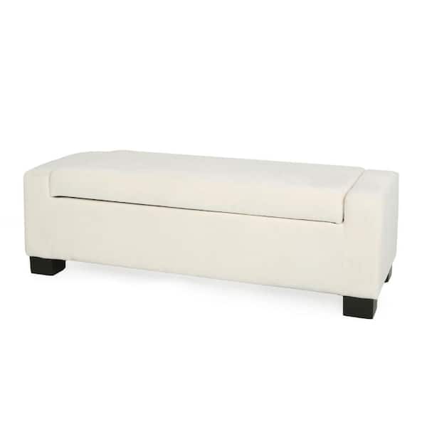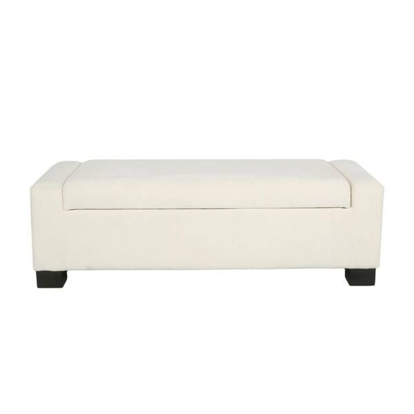 • White fabric-upholstered storage ottoman