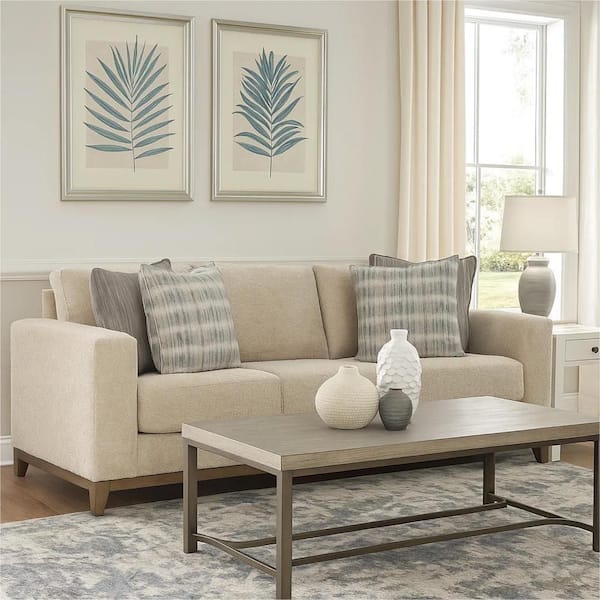 Klyn 93 in. Straight Arm Polyester Rectangle Sofa in Gray and Brown