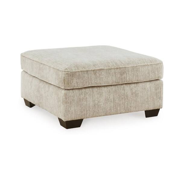 Layla Parchment Ivory and Black Polyester Square Accent Oversized Ottoman