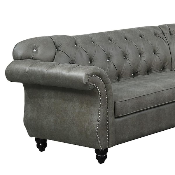 Leatherette 35.0 in. Rolled Arms 4-Piece Faux leather Sectional Sofa in. Gray with Crystal Tufted Back
