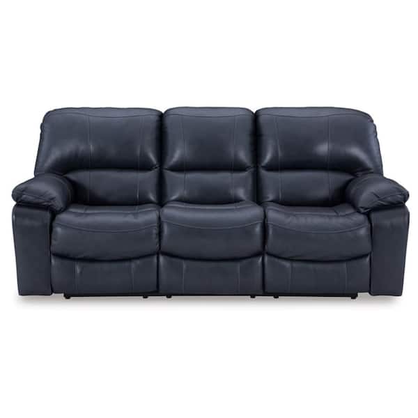 Leesa 41 in. Straight Arm Faux Leather Rectangle Sofa in Ocean Blue