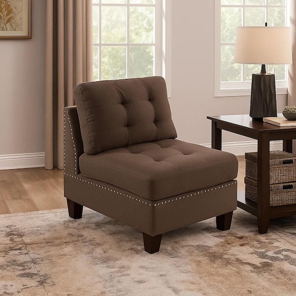 Lemy 32 in. Armless Fabric Square Sofa in. Brown