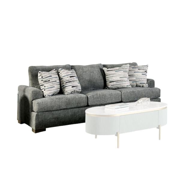 Lewis 40 in. Straight Arm Polyester Rectangle with 4-Accent Pillows Sofa in Gray