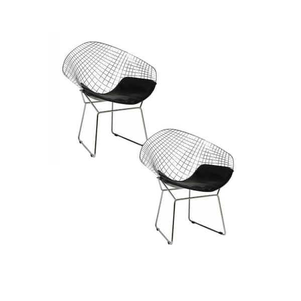 Lexy Black Faux Leather Accent Chair (Set of 2) with Chrome Mesh Wire