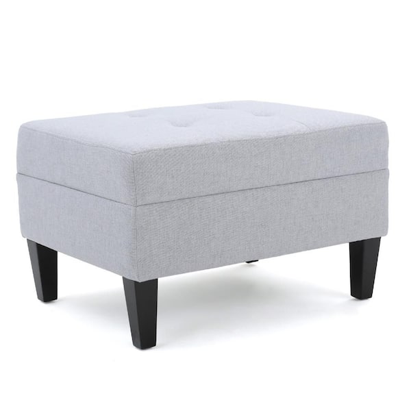 Light Gray and Black Fabric Rectangle Accent Ottoman