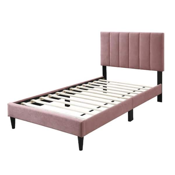 Lilian Pink and Black Wood Frame Full Platform Bed with Tufted Upholstered Headboard