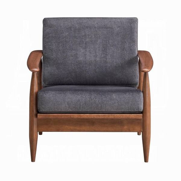 Lissa Charcoal Gray and Brown Fabric Accent Arm Chair with Soft Cushioning