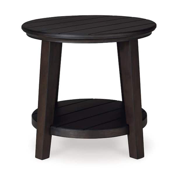 Liu 26 in. Cherry Brown Round Wooden End Table with Bottom Shelf