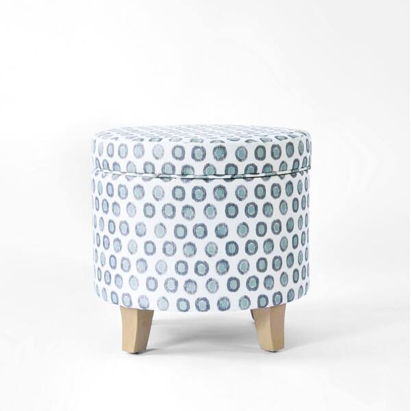 Loni White, Blue and Green and Brown Polyester Round Storage Ottoman