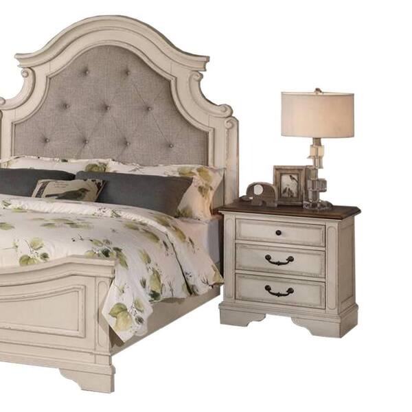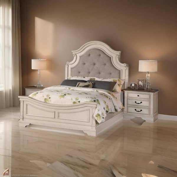 Lupe Antique White and Gray Wood Frame King Size Platform Bed
