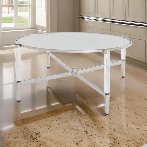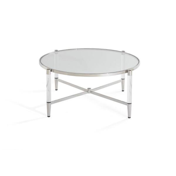 Mase 40 in. Silver Round Metal Coffee Table with Clear Acrylic Legs and Steel Frame