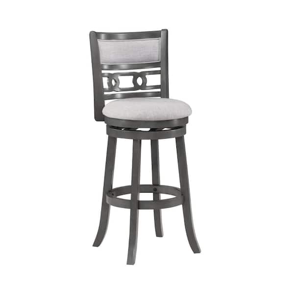 Matt Mist Gray Wooden Counter Stool with Swivel Cushioned Seat and Backrest
