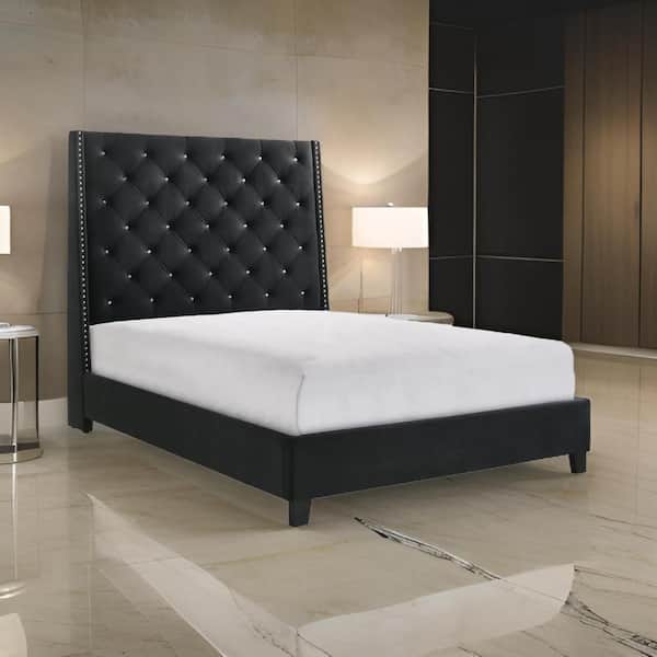 Maze Black Wood Frame King Size Platform Bed with Button Tufted