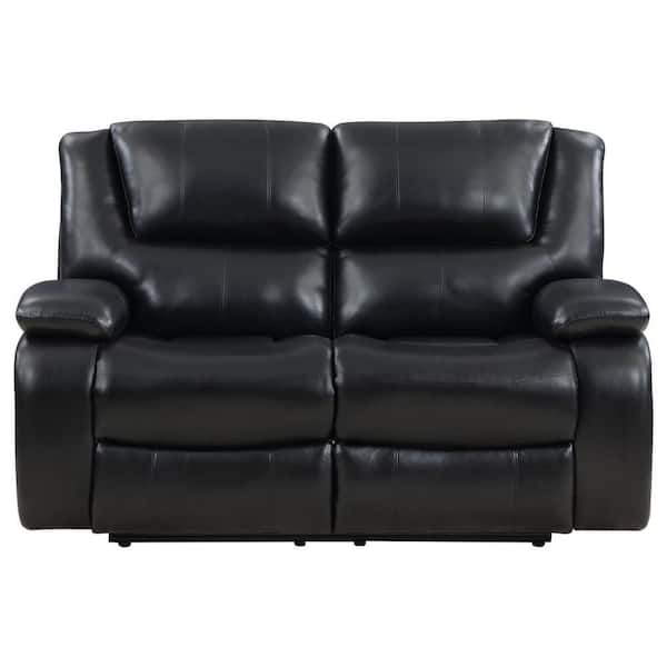 Mila Black Faux Leather Glider Recliner Manual Loveseat with Pillow Top