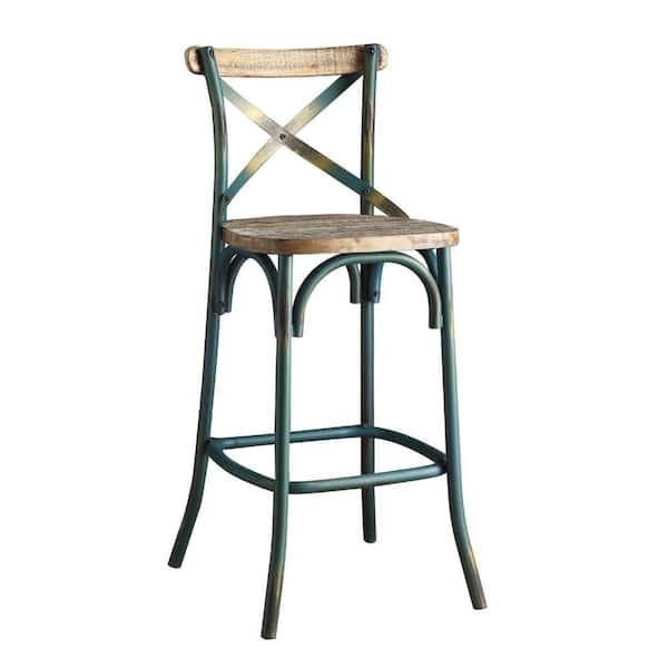 Modern Style Antique Sky Blue Wood and Metal with Panel Back Bar Height Chair