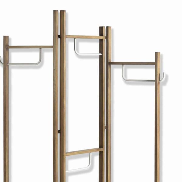 Modern Style Brown 3-Panel Metal Screen with Hooks and Rod Hangings