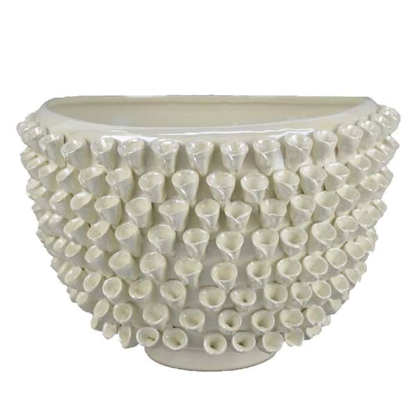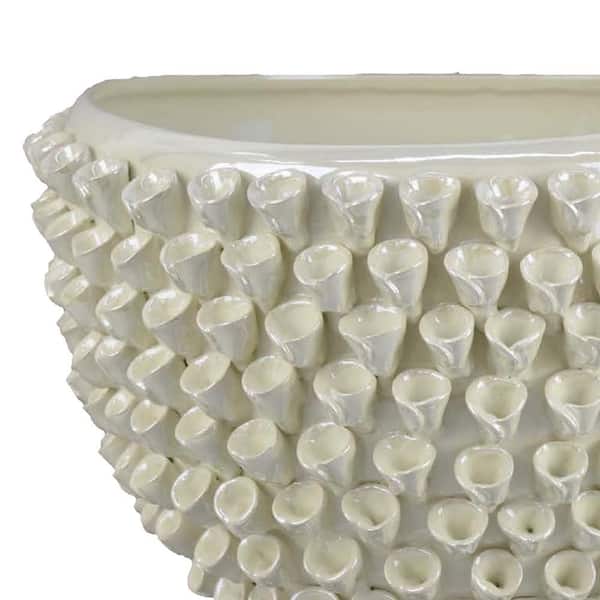 Modern White Round Ceramic 14.25 in. Decorative Bowl