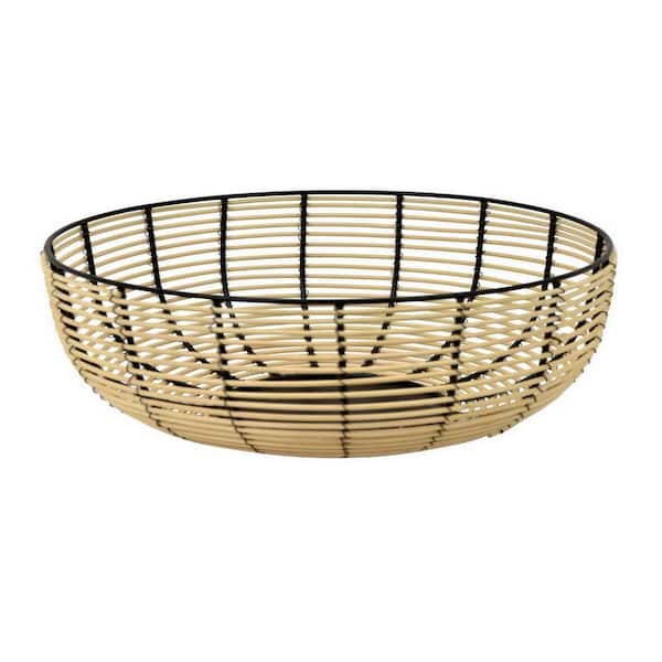 Natural Brown Decorative Bowl with Black Accent and Wired Woven Basket