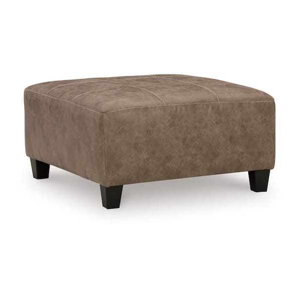 Nav Fossil Brown and Black Faux Leather Square Accent Oversized Ottoman