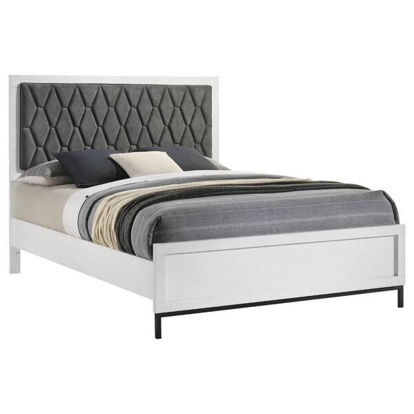 Noro White Gray and Black Metal Frame Queen Platform Bed with Tufted Upholstered Headboard