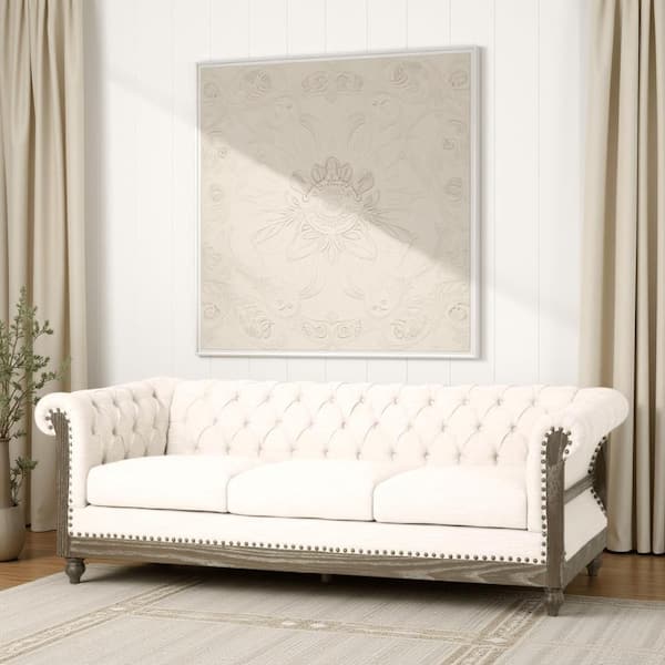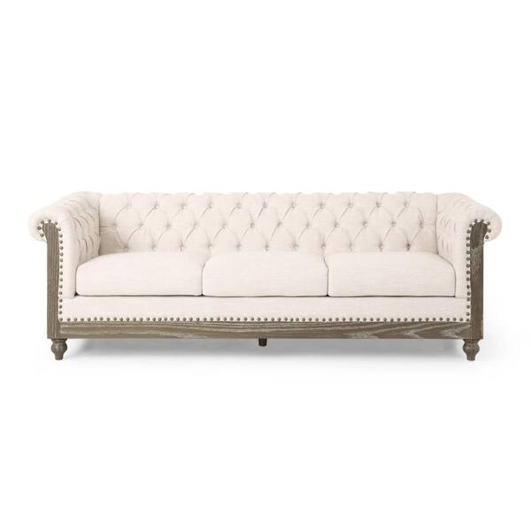 Ober 33.25 in. Round Arm Fabric Rectangle Chesterfield Button Tufted Sofa in Beige and Natural Brown